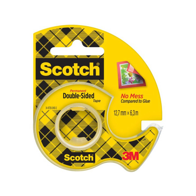 Lepilni trak Scotch obojestranski, na podajalcu. Primeren za vse, ki radi ustvarjajo in za vsakodnevno uporabo. Idealen je za uporabo pri pritrjevanju slik v foto albume, za pritrjevanje posterjev, plakatov itd. Rolica vsebuje 6,3 m traku s širino 12 mm, priložen ergenomsko oblikovan podaljalec.