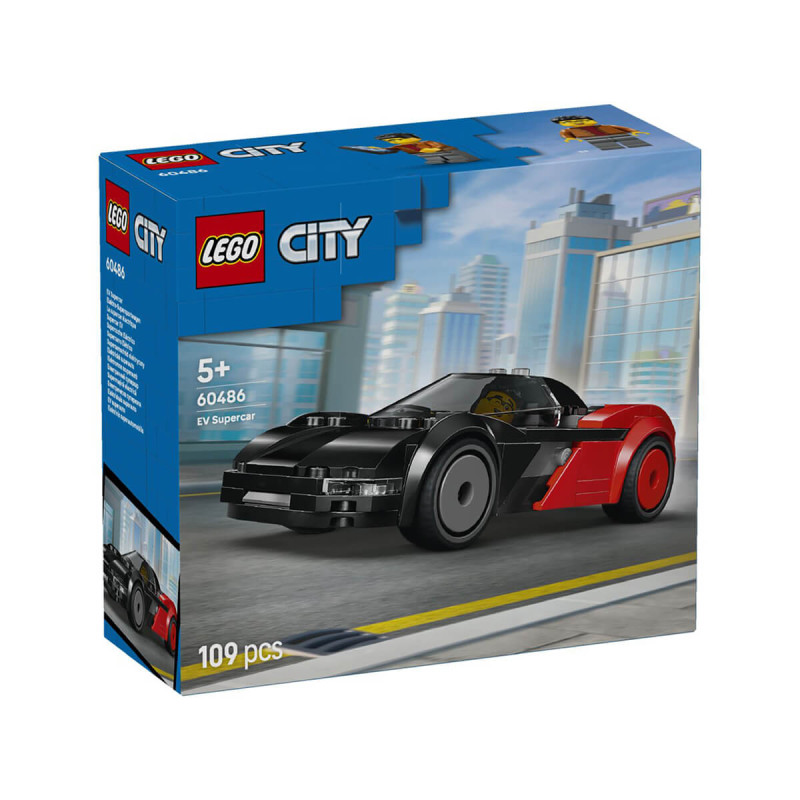 Lego® City 60486 EV Superavto Privoščite svojemu mlademu navdušencu nad električnimi avtomobili komplet za sestavljanje LEGO City EV superavto (60486). Enostavna igrača za sestavljanje EV športnega avta je polna realističnih podrobnosti za igro in razstavljanje, vključno z elegantno aerodinamično karoserijo s privlačno rdeče-črno barvno kombinacijo, gumijastimi pnevmatikami z nizkim profilom, dolgo zadnjo lučjo in zatemnjenim pokrovom kabine. Otroci lahko odprejo zadnjo loputo in dostopajo do baterijskega sklopa, minifiguro voznika pa posadijo za volan za dolge ure hitrih in domiselnih pustolovščin. Majhen igralni komplet je odlično darilo za rojstni dan ali presenečenje za fante, dekleta in otroke, ki imajo radi sodobna električna vozila in radi sestavljajo s kockami LEGO. Primerno za otroke stare 5 let +.