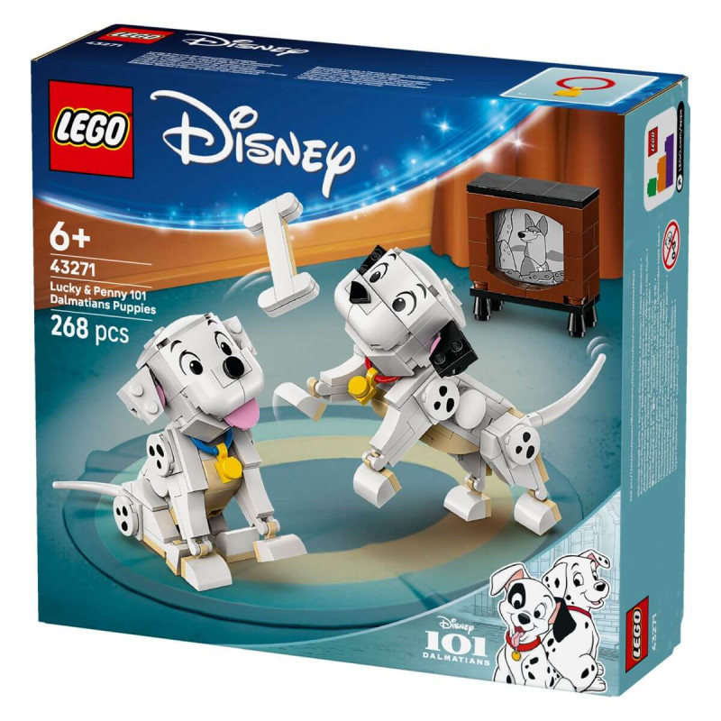 Lego® Disney Classic 43271 Mladička Lucky in Penny 101 dalmatinec Zdaj lahko posvojiš kar dva izjemno ljubka psička! Ustvari Luckyja in Penny iz Disneyjeve uspešnice 101 dalmatinec in uživaj v ljubkovanju psičkov. Nauči ju, kako prinesti predmet, vrzi jima kost ali skupaj glejte televizijo. Psička obračata glaviter premikata noge in rep, tako da lahko stojita, sedeta ali ležeta, ko se ne igrata. Nato te bosta potrpežljivo počakala in te opazovala s pasjimi učki!