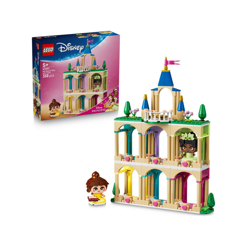 Lego® Disney Princess™ 43291 Mini Belle in Tiana z gradom Deli navdušenje nad liki Disney princesk z oboževalci, s kompletom igrače za sestavljanje LEGO Disney Princeske Mini Belle in Tiana z gradom (43291). Majhna lika iz filma Belle in Tiana pomagata navdihniti pripovedovanje zgodb s priloženima dodatkoma knjigo in žlico. Vsak lik ima premične roke in lahko drži dodatek. Igralni komplet s sestavljivim gradom ima 3 nadstropja in vključuje prostorske enote, usklajene po barvah za vsakega lika iz zbirateljske serije. V osrednjem stolpu ima vrtljivo ploščo, na kateri lahko razstaviš kateri koli lika iz serije. Izpolni otroško željo po igri z Disney princeskami z igračo za sestavljanje, ki je odlično rojstnodnevno ali praznično darilo za deklice in dečke. Primerno za otroke stare 5 let +.