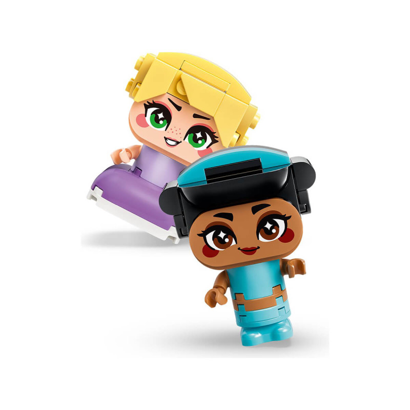 Lego® Disney Princess™ 43303 Mini Jasmine in Motovilka Otroke, navdušite s kompletom igrače za sestavljanje LEGO Disney princeske Mini Jasmine in Motovilka (43303). Lika iz filma Jasmine in Motovilka s priloženima dodatkoma čarobno laterno in ponvijo spodbujata pripovedovanje zgodb in igro pretvarjanja. Vsak lik ima premične roke in lahko drži dodatek. Prav tako so kot nalašč za ljubek razstavni kos in so del večje zbirateljske serije, ki vključuje tudi druge iz kock sestavljene igrače z liki Disney princesk. Izpolnite otroško željo po Disney princeskah z igralnim kompletom za sestavljanje, ki je ljubko darilo za deklice in dečke ob rojstnih dnevih in drugih posebnih priložnostih. Primerno za otroke stare 5 let +.