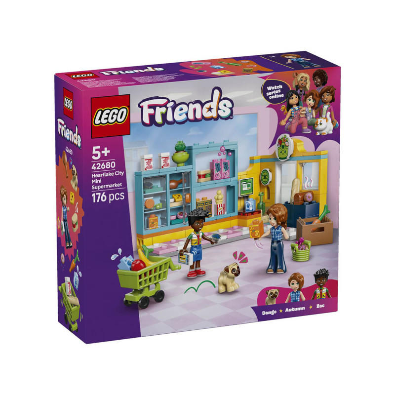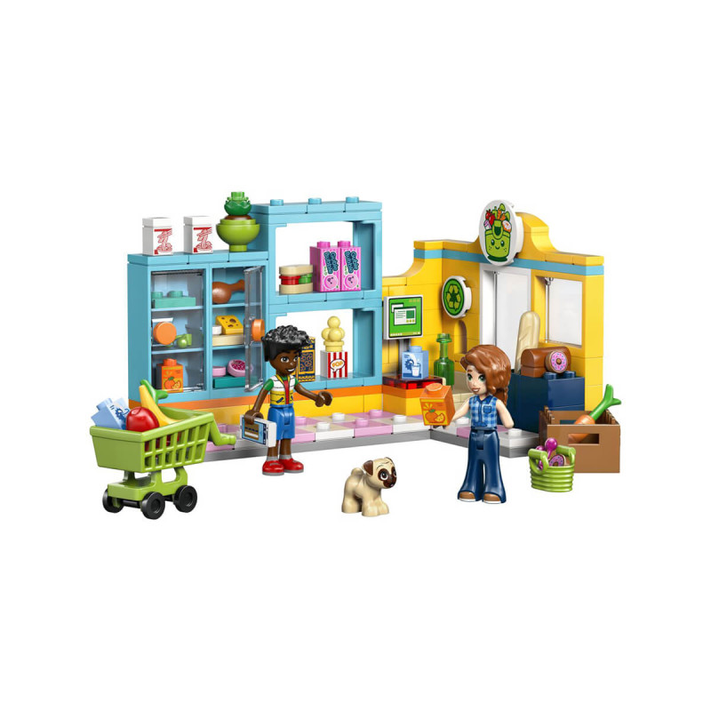 Lego® Friends 42680 Trgovina z mešanim blagom v Heartlake Cityju Navdihnite igro navideznega nakupovanja živil z igralnim kompletom Trgovina z mešanim blagom v Heartlake Cityju. Otroci si lahko s tem podrobnim kompletom trgovine sami izmišljujejo zabavne zgodbe. Vsebuje realistične funkcije, kot so police z živili, nakupovalni voziček, košarico, točko za recikliranje in blagajno. Zabavna igrača vključuje minifiguri Autumn in Zaca ter kužka in veliko hrane, ki jo lahko kupijo kupci. Odkrij kruh, krofe, sok, mleko, škatle z rezanci, žvečilni gumi, sendvič, jabolko, banano, jagode, češnje, korenje, pokovko, rastlino in še več. Z aplikacijo LEGO Builder omogočite otroku enostavno in intuitivno gradbeno pustolovščino. Tu lahko otroci povečajo in vrtijo modele v 3D-pogledu, shranjujejo komplete in sledijo napredku. V kompletu je 176 koščkov. Primerno za otroke stare 5 let +.
