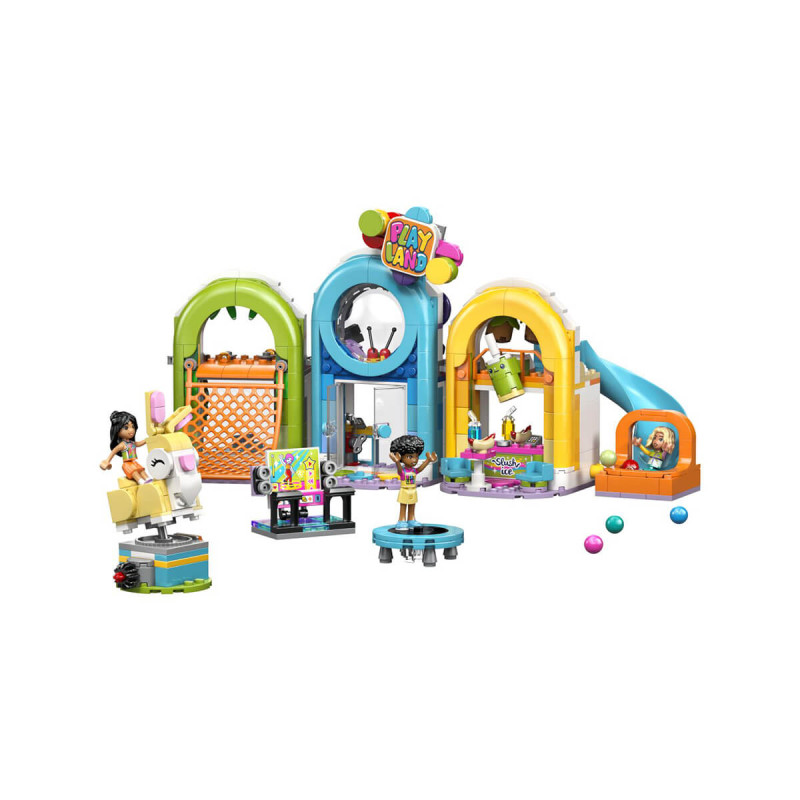 LEGO® Friends 42686 Zabavno notranje igrišče Pustite domišljiji prosto pot, medtem ko otroci raziskujejo komplet LEGO Friends Zabavno notranje igrišče (42686). Razburljiv komplet vsebuje 3 minifigure in veliko dodatkov z ovirami, izzivi in vožnjami, ki čakajo na igranje. Otroci ne bodo želeli zapustiti tega igrišča, saj bodo dolge ure uživali v odprti igri vlog in si izmišljevali dogodivščine za like. Povsod se skriva nekaj zabavnega, vključno s plezalno mrežo, ovirami, vrtiljakom, bazenom z žogami, toboganom, zajčjo gugalnico in bifejem. Zabava se še ne konča, saj komplet vsebuje še več podrobnosti, ki spodbujajo ustvarjalnost, vključno s plesno napravo, trampolinom, hotdogi, ledenimi napitki, avtomatom za žvečilke in blagajnami. Je zabavno darilo za otroke, ki uživajo v igri pretvarjanja in si z liki izmišljujejo domišljijske zgodbe. Z aplikacijo LEGO Builder omogočite otroku enostavno in intuitivno gradbeno pustolovščino. Tu lahko otroci povečajo in vrtijo modele v 3D-pogledu, shranjujejo komplete in sledijo napredku. V kompletu je 668 koščkov. Primerno za otroke stare 7 let +.