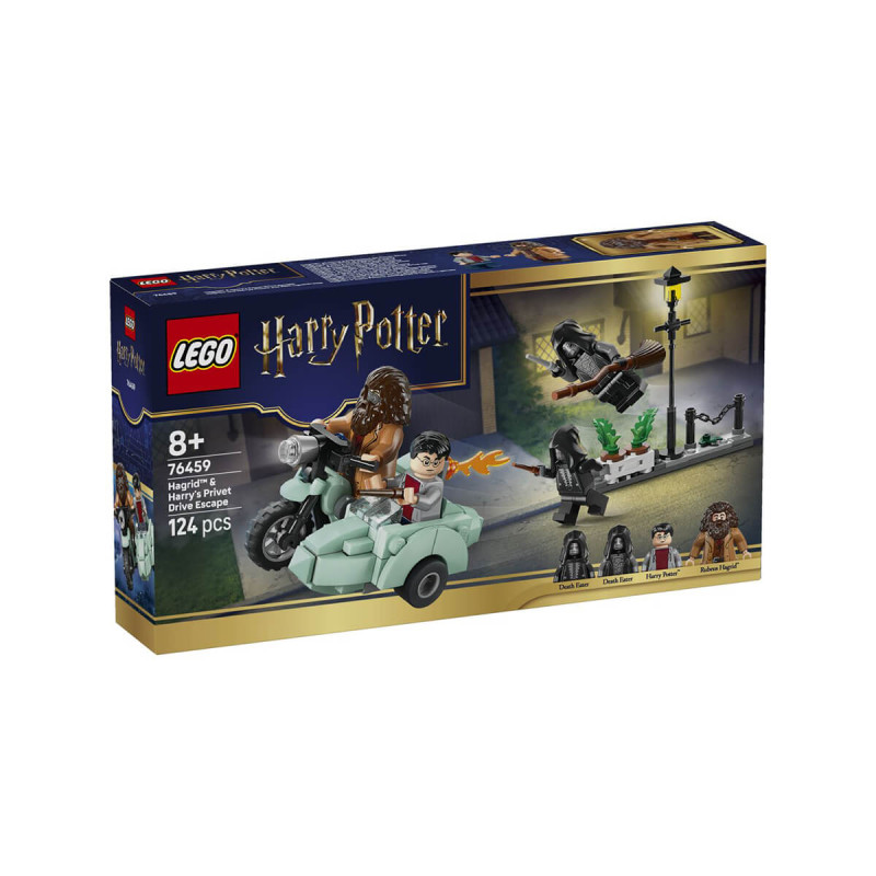 Lego® Harry Potter™ 76459 Hagrid™ in Harry bežita z Rožmarinove ulice Z motoristično igračo LEGO Harry Potter™ (76459) za otroke podoživi pobeg Hagrida in Harryja z Rožmarinove ulice, nad katero so se zbrali jedci smrti iz dela Harry Potter in svetinje smrti. Čarovniški komplet za sestavljanje je zabavno majhno rojstnodnevno darilo za fante, dekleta in vse ljubitelje. V kompletu je prvi model LEGO Hagridovega letečega motorja, tu pa so še 4 minifigure LEGO Harry Potter in mini prizorišče Rožmarinove ulice za navdih ustvarjalne igre. Minifiguro Hagrid Ruralus posedi na motorno kolo, Harryja Potterja pa v bočno prikolico. Minifiguri jedcev smrti postavi na Rožmarinovo ulico, na kateri sta še ulična svetilka in stojalo s cvetličnimi lončki, ki je zasnovano tako, da se med drznim pobegom junakov prekucne. Primerno za otroke stare 8 let +.