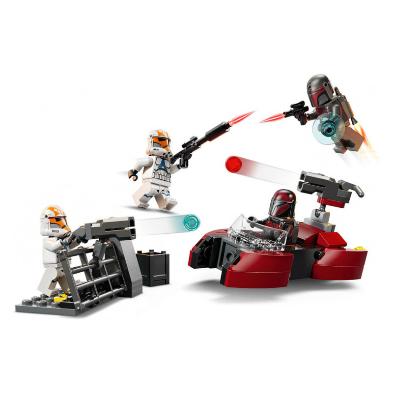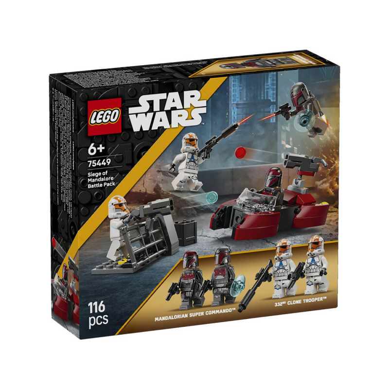 Lego Star Wars 75449 Bojni paket Mandalor Otrokom podarite osupljiv bojni paket, da uprizorijo svojo različico obleganja Mandalora iz Vojne zvezd: Vojna klonov™. V kompletu za sestavljanje so 4 minifigure LEGO Vojna zvezd™ – 2 mandalorska superkomandosa in 2 različici Ahsoka klonskih jurišnikov iz 332. skupine, mandalorski dirkalnik, barikada klonskih bojevnikov in veliko dodatkov za akcijsko igro. Aktiviraj lasersko puško za izstreljevanje žebljičkov in vrni ogenj z izstreljevalnikom žebljičkov, nameščenim na barikadi. Pripni raketne nahrbtnike komandosov za zračne napade z njihovimi laserskimi pištolami. Ta igrača za sestavljanje ponuja ogromno možnosti za navdih otroške domišljije in je fantastično darilce za otroke in ljubitelje Vojne zvezd. Poišči še druge komplete bojnih paketov iz kolekcije (v prodaji ločeno) za še več igralnih možnosti. Z aplikacijo LEGO Builder omogočite otroku enostavno in intuitivno gradbeno pustolovščino. Tu lahko otroci povečajo in vrtijo modele v 3D-pogledu, shranjujejo komplete in sledijo napredku. V kompletu je 116 koščkov. Primerno za otroke stare 6 let +.