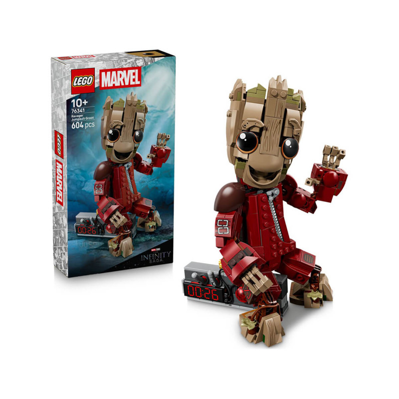 Lego® Super Heroes 76341 Očarljivi Groot v pajacu uničevalca Sestavi očarljivega malega Groota v pajacu uničevalca, popolnoma členjeno figuro za dinamični prikaz in igro vlog. Otroci lahko uporabijo igračo za sestavljanje LEGO | Marvel, da podoživijo svoje najljubše filmske prizore iz filmov Marvel in si izmišljajo neskončne dogodivščine. V zbirateljskem izdelku LEGO | Marvel je Groot oblečen v pajaca uničevalca, kot ga nosi v filmu Varuhi galaksije 2. Sestavljiva figura je opremljena z detonatorjem z 2 gumboma in 2 premičnima vzvodoma, kar se nanaša na prepoznaven filmski prizor. Lik je zelo nastavljiv in ima sklepe v ramenih, rokah, prstih, bokih, stopalih in vratu, poleg tega pa ima nastavljive obrvi za različne obrazne izraze. Z aplikacijo LEGO Builder omogočite otroku enostavno in intuitivno gradbeno pustolovščino. Tu lahko otroci povečajo in vrtijo modele v 3D-pogledu, shranjujejo komplete in sledijo napredku. Komplet za sestavljanje LEGO | Marvel je odlična ideja za rojstnodnevno darilo. V kompletu za sestavljanje so 604 koščki. Primerno za otroke stare 10 let +.