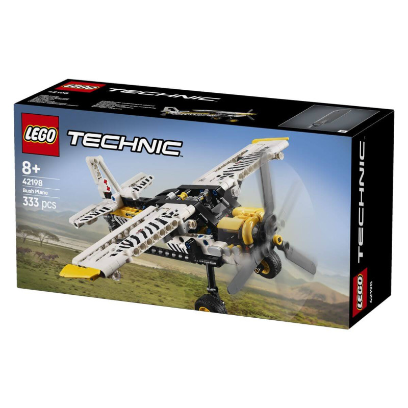 Lego® Technic™ Goščavsko letalo Poleti v nebo s kompletom LEGO® Technic Goščavsko letalo. Pritisni vzvod in aktiviraj vrtljivi propeler. Ob strani uravnaj zakrilca za krmiljenje in zadnje krilo, da bo letalo poletelo še više. Nato odpri pokrov motorja, da lahko občuduješ 4-valjni batni motor. Zdaj si pripravljen na vzlet!