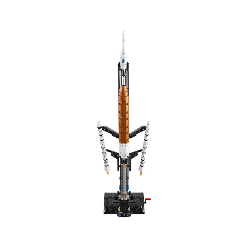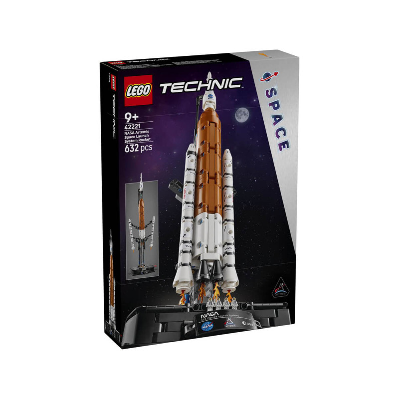 Lego® Technic 42221 Vesoljski lansirni sistem NASA Artemis Potovanje, polno odkritij, začni z izstrelitvijo rakete s kompletom Vesoljski lansirni sistem NASA Artemis za fante in deklice. Izobraževalni komplet LEGO Technic prikazuje trenutek izstrelitve rakete v treh različnih fazah. Obrni ročico in opazuj, kako se od jedra najprej ločijo raketni pospeševalniki na trdo gorivo, nato pa še jedro od konice. Ročico vrti še naprej, saj se bosta od modula s pogonom ločila tudi vesoljsko plovilo Orion in lansirni sistem. Komplet za sestavljanje rakete je bil razvit v sodelovanju z agencijama NASA in ESA, otrokom pa omogoča raziskovanje lansirnega sistema, ki bo izstrelil vesoljsko plovilo Orion v Lunino orbito. V kompletu so 4 nanofigure astronavtov, zabavne podrobnosti z modrim plamenom in napisna ploščica, s katero ustvariš za oko privlačen razstavni kos. V kompletu LEGO Technic se deli in mehanizmi premikajo realistično, tako da mladim sestavljalcem LEGO predstavijo inženirsko okolje na ustrezen in realističen način. Z aplikacijo LEGO Builder omogočite otroku enostavno in intuitivno gradbeno pustolovščino. Tu lahko otroci povečajo in vrtijo modele v 3D-pogledu, shranjujejo komplete in sledijo napredku. V kompletu je 632 koščkov. Primerno za otroke stare 9 let +.