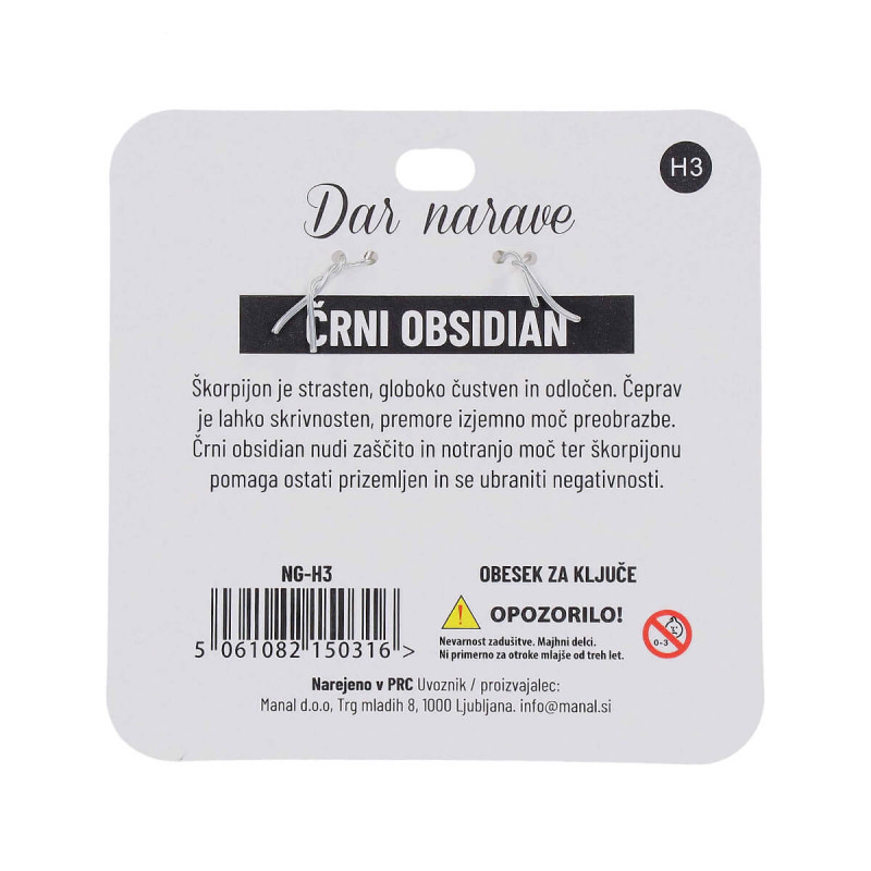 Črni obsidian nudi zaščito in notranjo moč ter škorpijonu pomaga ostati prizemljen in se ubraniti negativnosti. Opozorilo! Nevarnost zadušitve, majhni delci. Ni primerno za otroke, mlajše od 3 let.