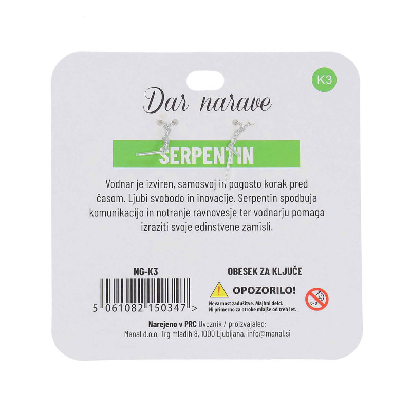 Serpentin spodbuja komunikacijo in notranje ravnovesje ter vodnarju pomaga izraziti svoje edinstvene zamisli. Opozorilo! Nevarnost zadušitve, majhni delci. Ni primerno za otroke, mlajše od 3 let.
