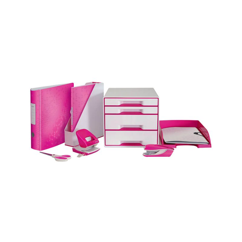 Sestavljive odlagalne košarice v modnih metalnih barvah za tiste, ki so radi posebni. Skupaj luknjači in spenjači v enakih barvah tvorijo zanimivo pisarniško kolekcijo.