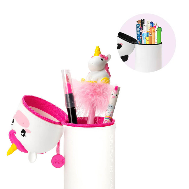 Silikonska peresnica, ki se lahko pretvori v lonček za pisala z motivom samoroga