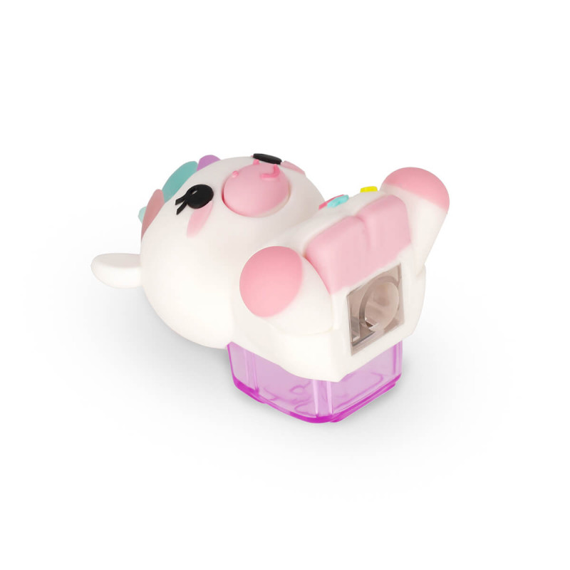 Prikupen šilček z motivom samoroga, popoln za vsako peresnico. Izdelek ni primeren za otroke, mlajše od 3 let. Majhni delci, nevarnost zadušitve. Vsebuje ostro rezilo. Vsebuje ostro rezilo. Vsebuje baterijo. Oddaja bliske svetlobe, ki lahko pri občutljivih osebah sprožijo epileptične napade.