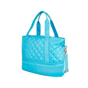 Vsebuje prostoren glavni predal in manjši žep za shranjevanje. Zapiranje je na zadrgo, ima ročki za nošenje v roki in nastavljiv trak za nošenje čez ramo. Izdelana je iz mehkega, sijočega materiala.