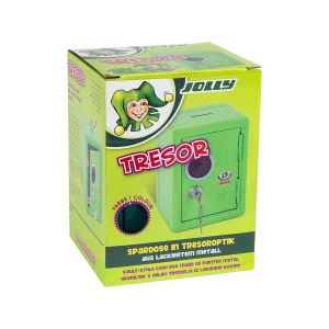 V trezorju ali hranilniku otroci lahko varno hranijo svoje prihranke in drobne zaklade. Izdelan je iz barvne kovine, zapre se pa lahko s ključem ali kombinacijsko ključavnico. Na razpolago v modri, zeleni ali pink barvi. Velikost: 12 x 10,5 x 16 cm