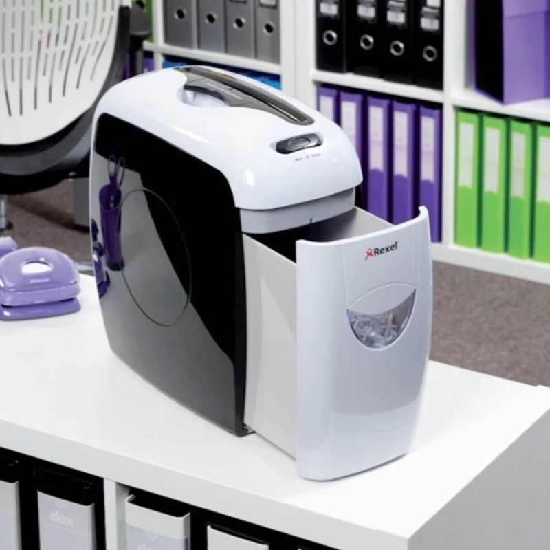 Elegantno dizajniran uničevalec dokumentov za dom in male pisarne. Reže do 7 listov papirja na koščke 4 x 25mm (varnostni razred P4). Uničuje tudi dokumente spete s papirnimi sponkami, ter kreditne kartice. Uničevalec ima 12l koš za papir, za do 80 listov zrezanega papirja in je enostaven za praznenje.